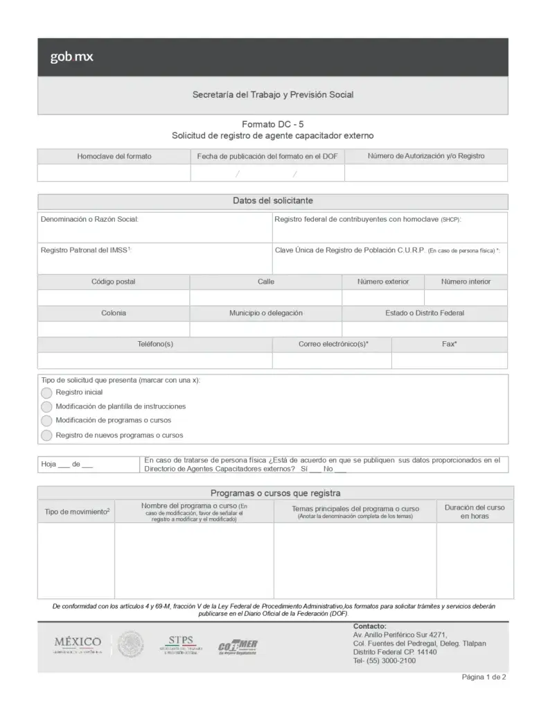 Alta DC-5 Persona Moral (Registro de ente capacitadora)